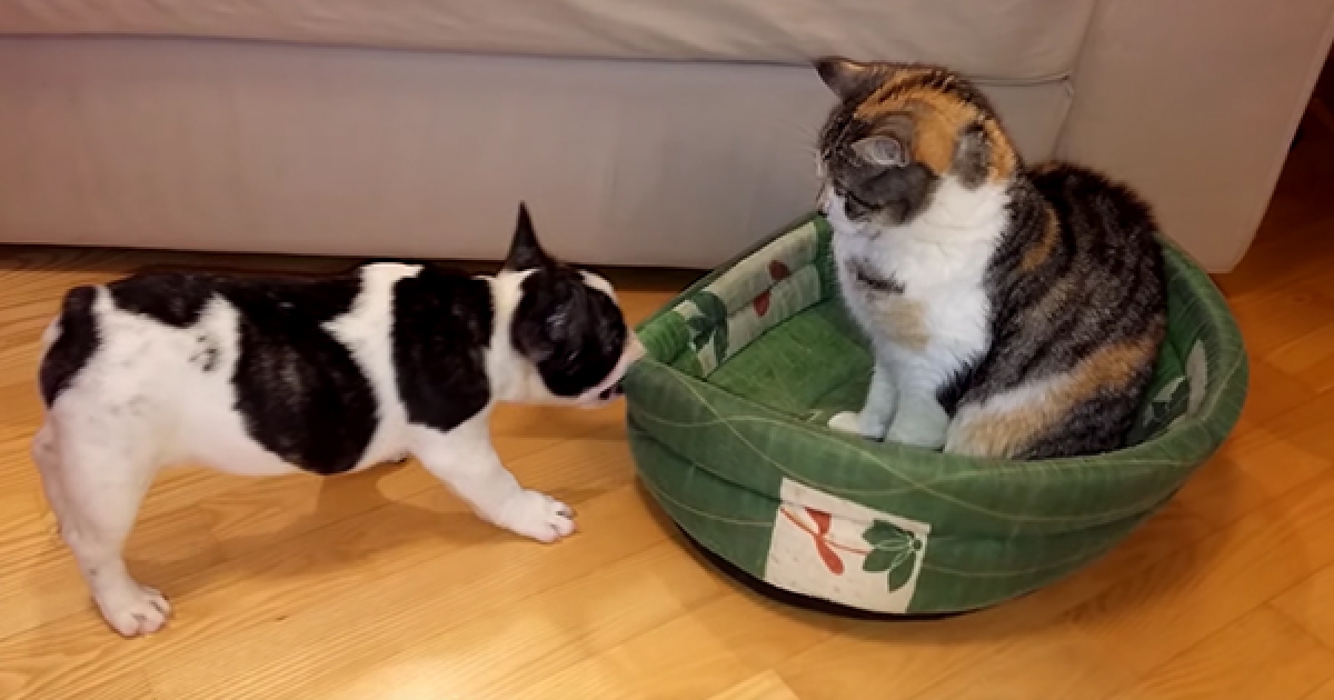 「暴怒法鬥 VS 傲嬌貓咪」 狗狗用盡辦法就是要搶回自己的小窩