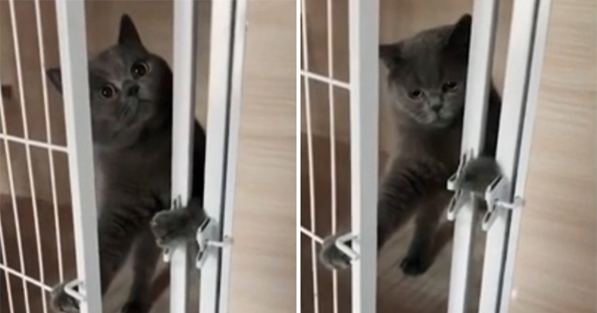 貓咪成功越獄的瞬間驚覺已被發現 牠愣住一秒:還是關回去好了