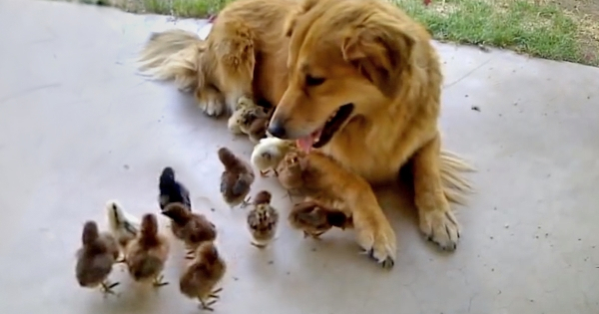 暖金金被10隻小雞包圍 牠看著看著「母愛爆發」:好~都領養啦!