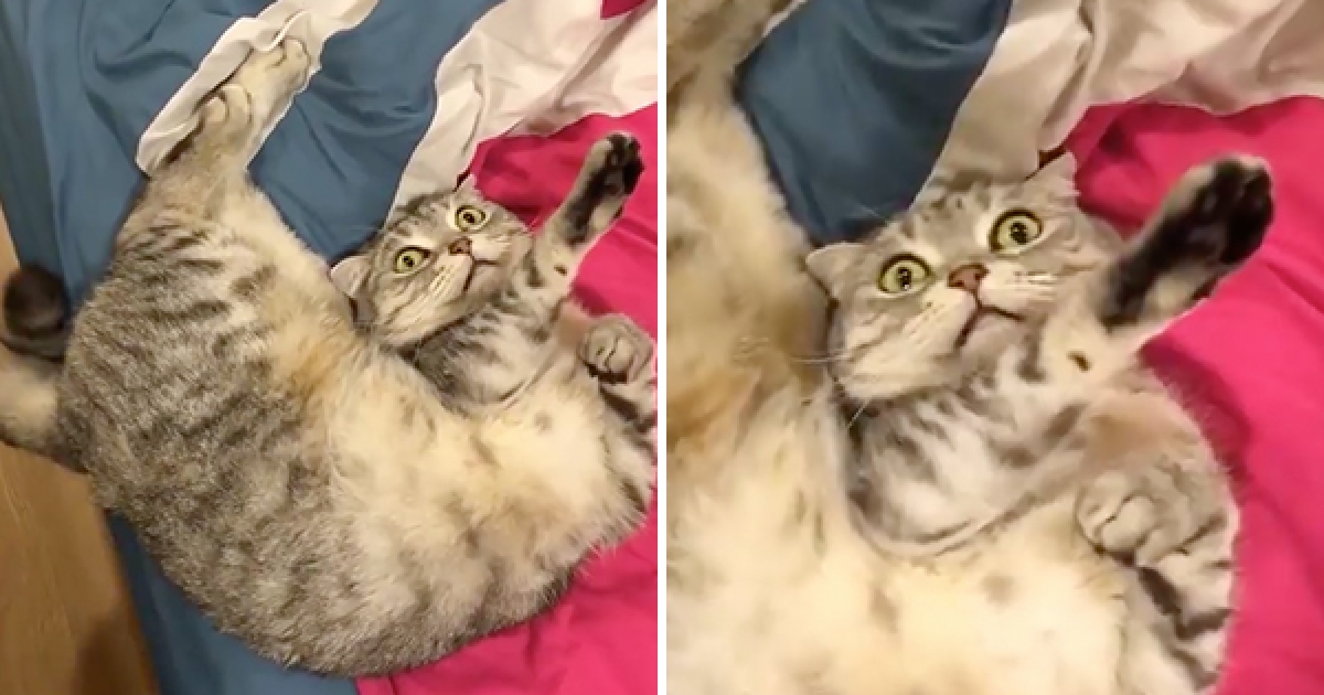 奧斯卡等級的貓! 主人一出手就立刻翻肚 腳腳抽2下:我沒命了…