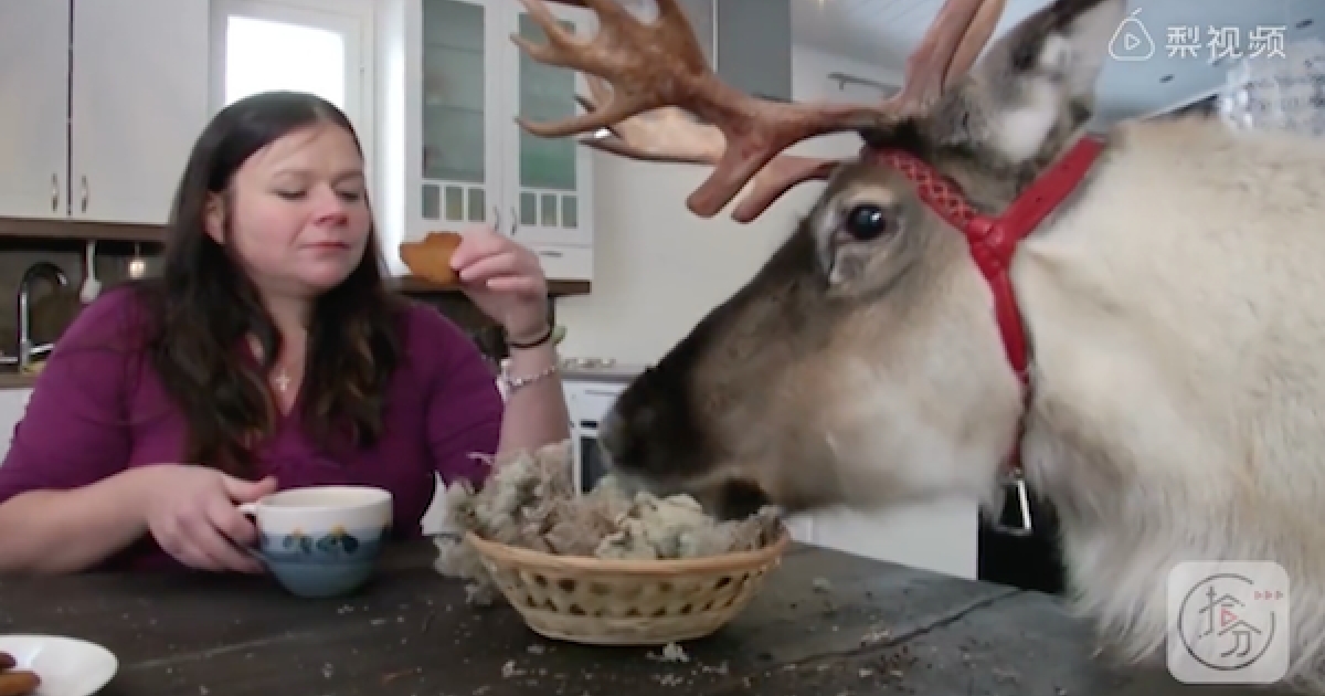馴鹿被收養後「自認是萌犬」 每天最愛拉主人去散步