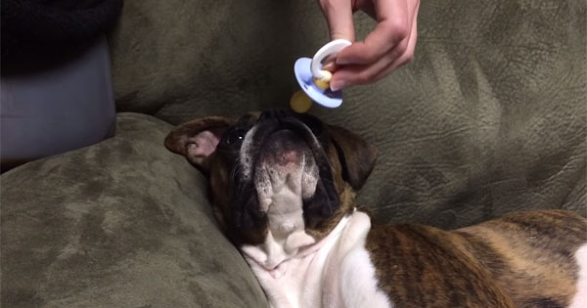 主人拿奶嘴給狗狗 牠「張嘴一口含住」啾啾啾吸不停