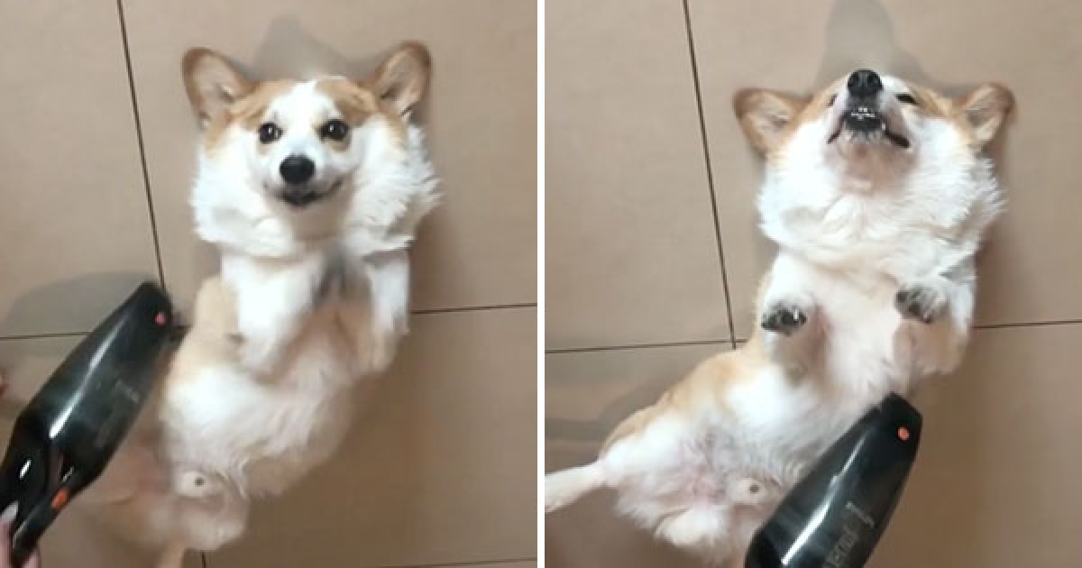 「拜託拜託吸肚肚~」 馬麻一打開吸塵器神柯基就翻肚:不要停~