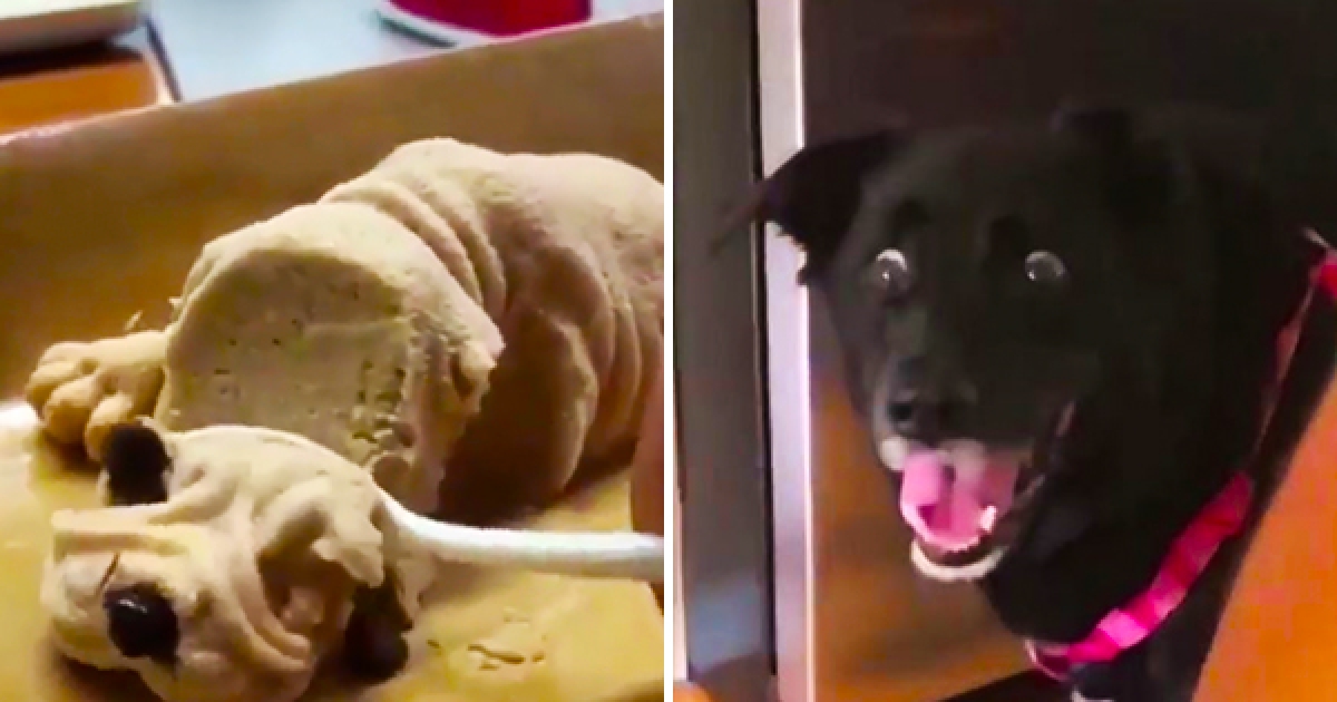 黑汪目睹主人切逼真狗蛋糕的頭 表情超驚恐:下一個不會是我吧