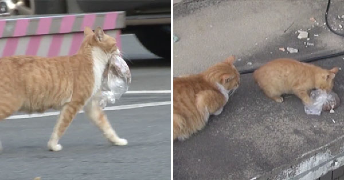 浪浪媽媽寧願餓肚子也要找到「裝袋的食物」,好心人跟蹤牠後驚見原來是為了孩子當場熱淚盈眶!