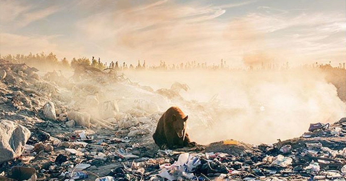 他拍的這張照片「心碎了一個月才敢PO出來」,燒傷的棕熊在火場吃垃圾的一幕讓他邊拍邊掉淚…