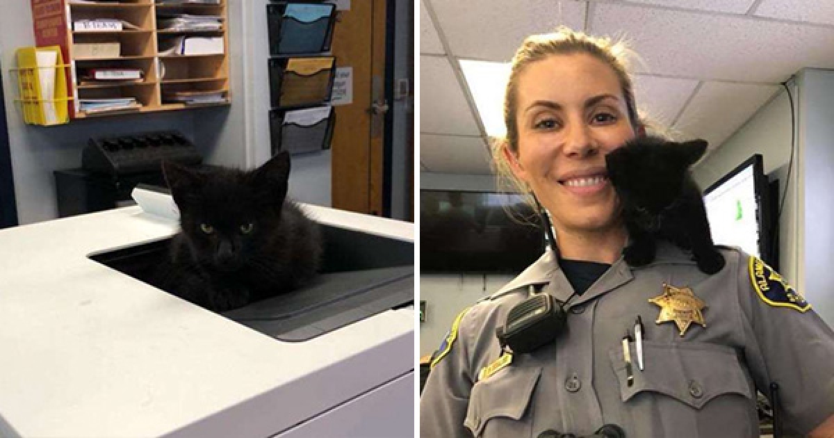 小黑貓闖進警察局尋找鏟屎官 只靠一招就成功被人帶回家了