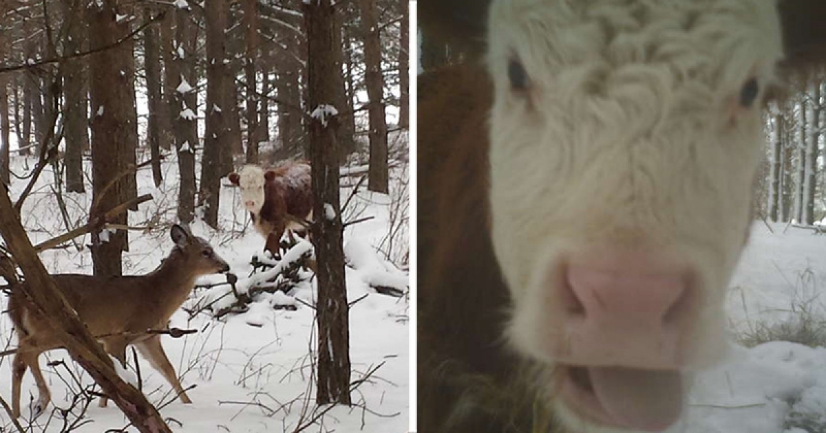 4個月大的小牛逃進森林裡 隱藏攝影機拍到「牠被一群鹿領養了」