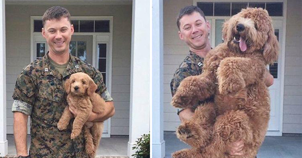 這個軍人征戰1年後回家「驚見愛犬變超巨大一隻」,傻眼以為牠被照了放大燈差點抱不動了!