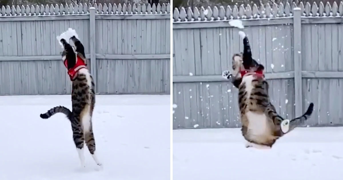 貓貓打排球!主人傳雪球過去 牠立馬「跳高高接球」:看我的!
