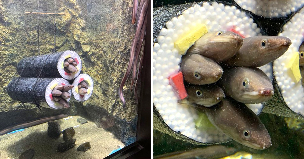 滿餡了~ 水族箱安裝「壽司卷」 呆萌鰻全進去湊熱鬧網笑翻