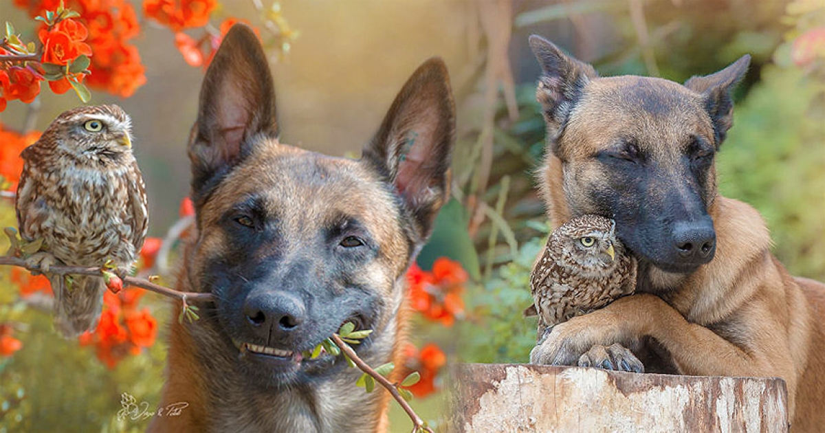 「我們是好朋友!」 狗狗與貓頭鷹賣萌拍「暖心生活照」眼神充滿愛