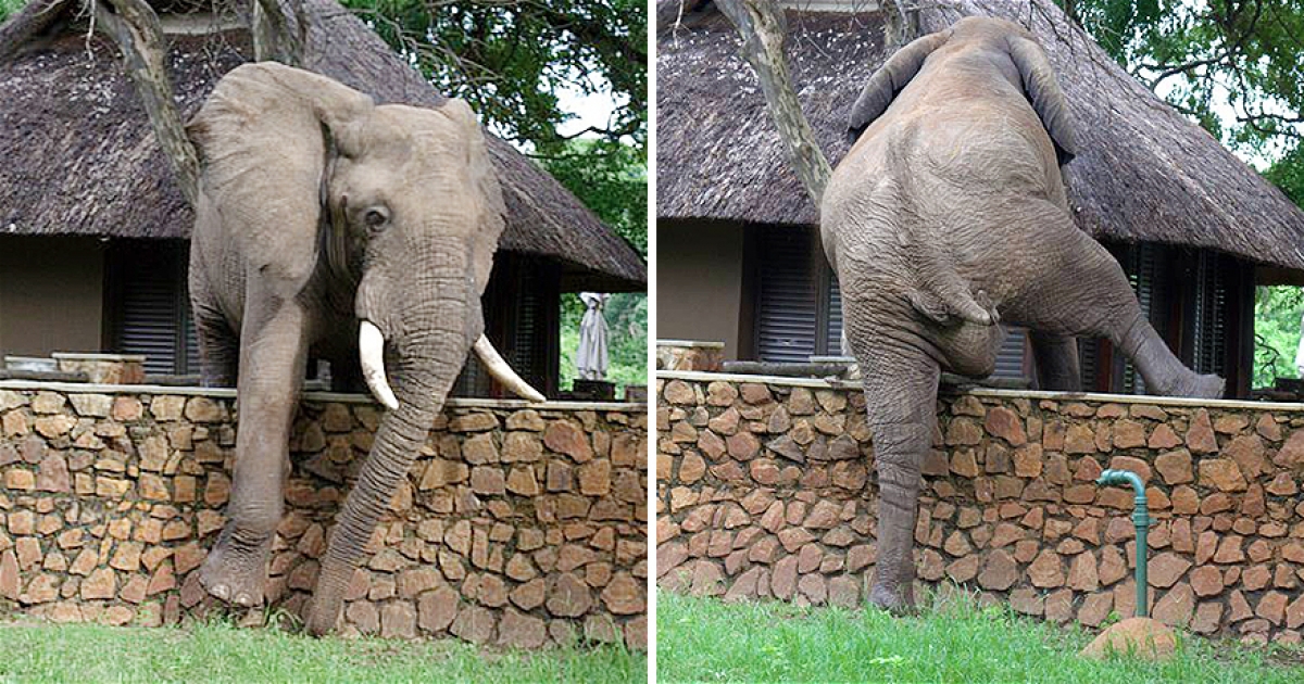 大象爬牆偷吃芒果不知道有鏡頭在拍 「轉身快逃」惹人笑:根本是人類