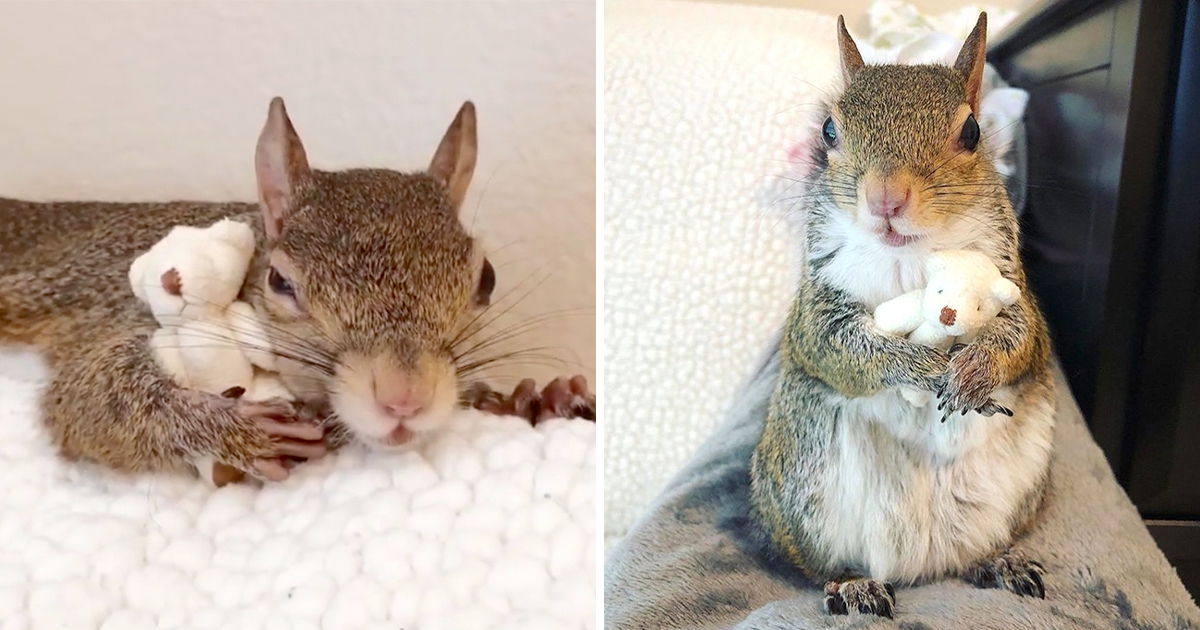 小松鼠獲救後「要抱著泰迪」才能入睡 「抱緊處理」萌樣超療癒:有你在最安心