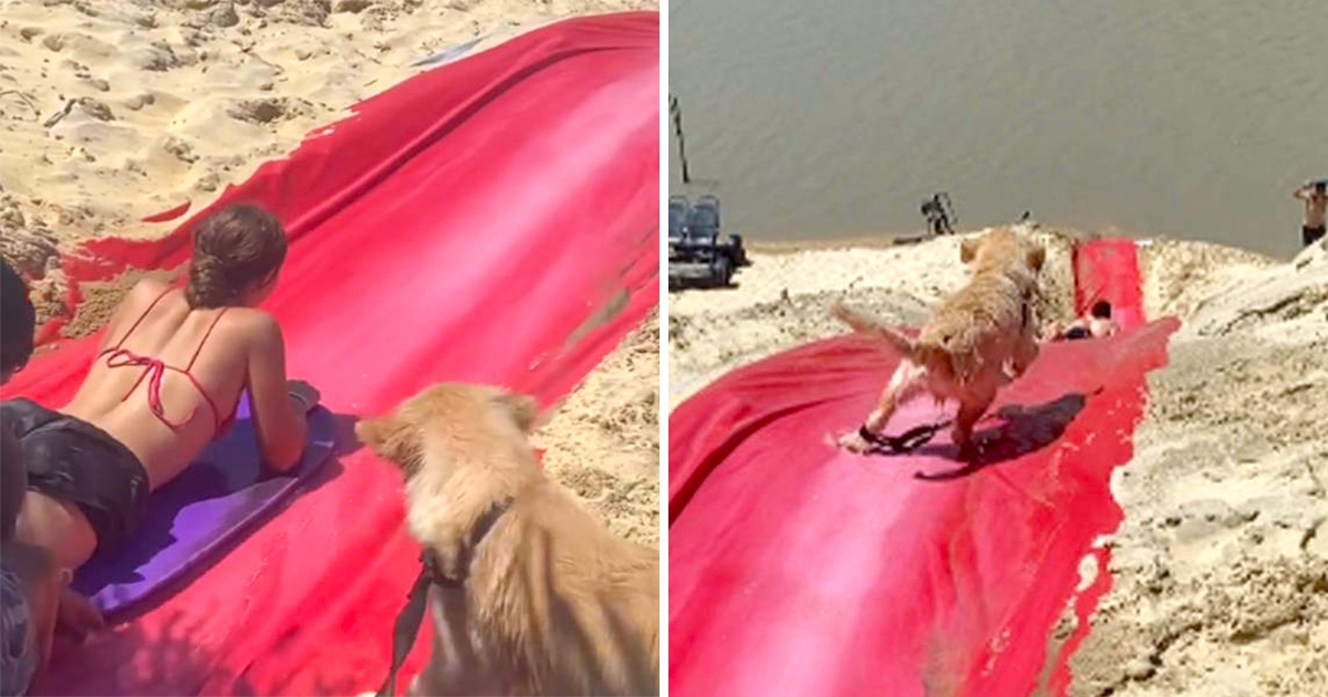 最簡單的快樂!小阿金看人類「玩滑水道」 興奮開溜:原來這麼好玩~