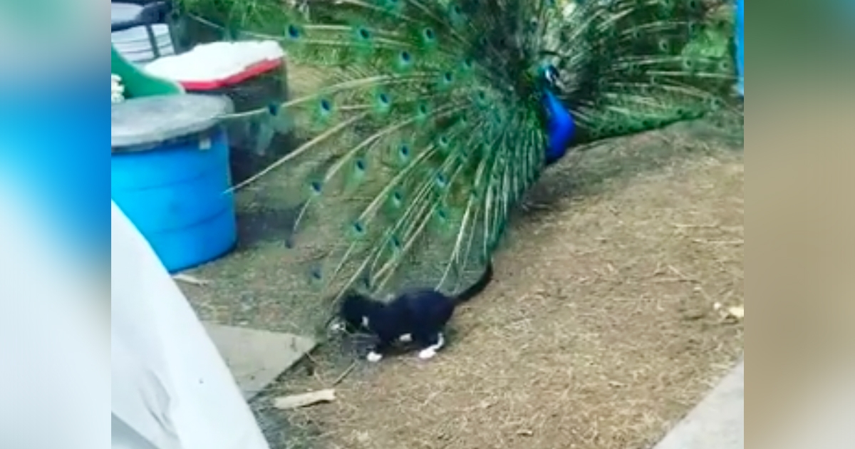 小奶喵初見「孔雀開屏」嗨翻了 後面跟緊緊:好大支的逗貓棒!
