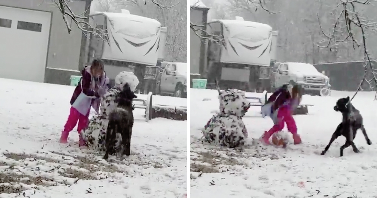 陪偶玩球球~ 小主人辛苦堆3層雪人 呆萌歐告推下「雪人腦袋」:雪球也是球