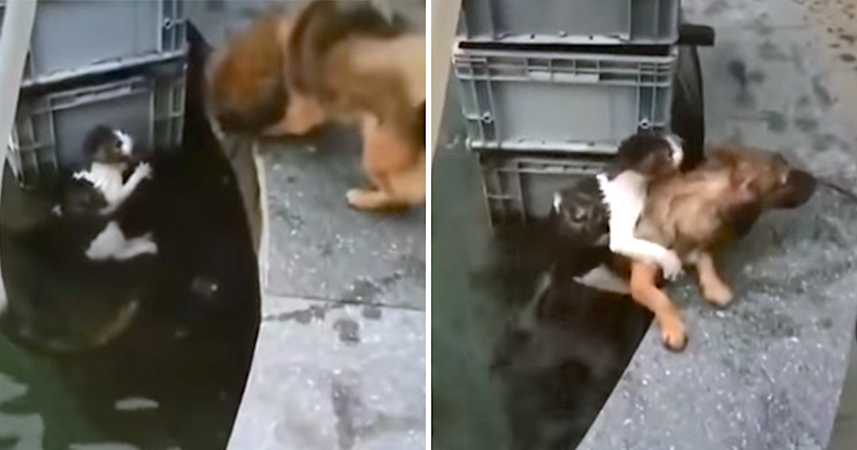 貓咪受困水池剉到發抖 下一秒「英雄汪」跳下去勇救的畫面暖翻天