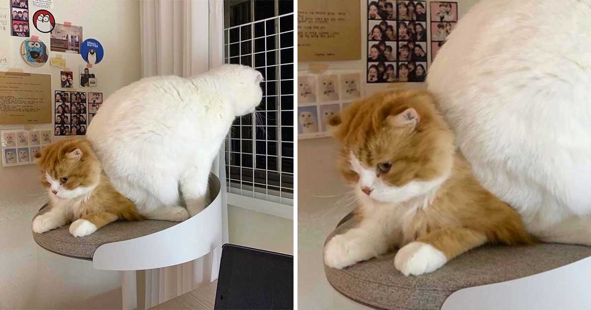 虛假兄弟情! 「被白貓當坐墊」一屁股狠壓 橘貓弟眼神空:喵生好難…