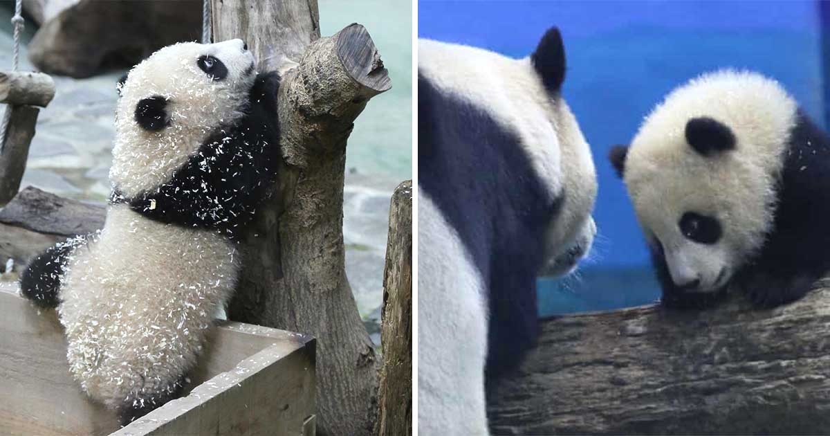 首天上班!圓寶與媽「天然萌」開記者會 嗨玩10分鐘就斷電成小麻糬♡