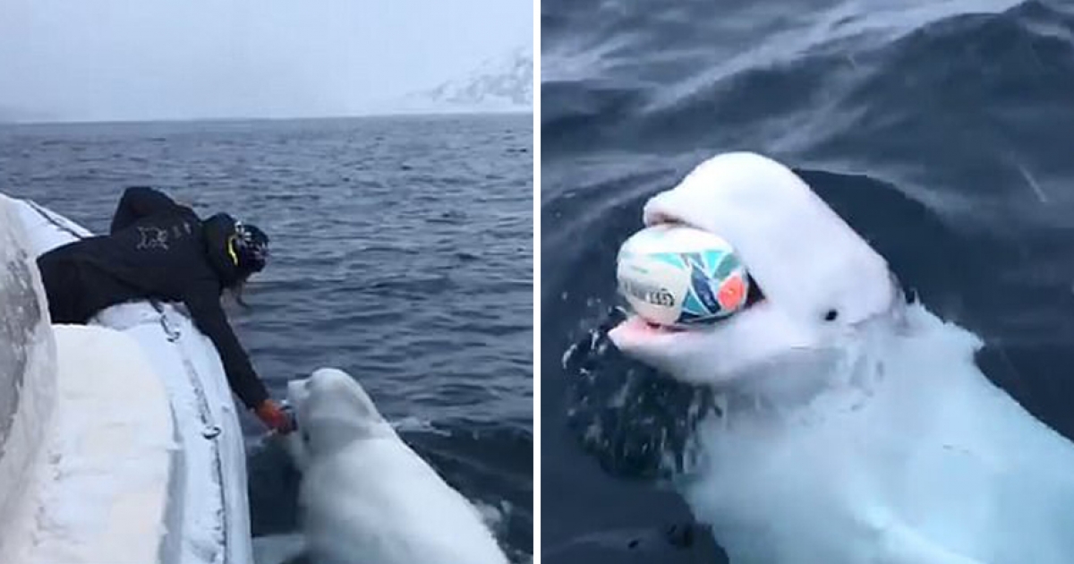 船員幸運遇到「超愛跟人類玩的白鯨」 牠玩傳接球超嗨:再丟給我~