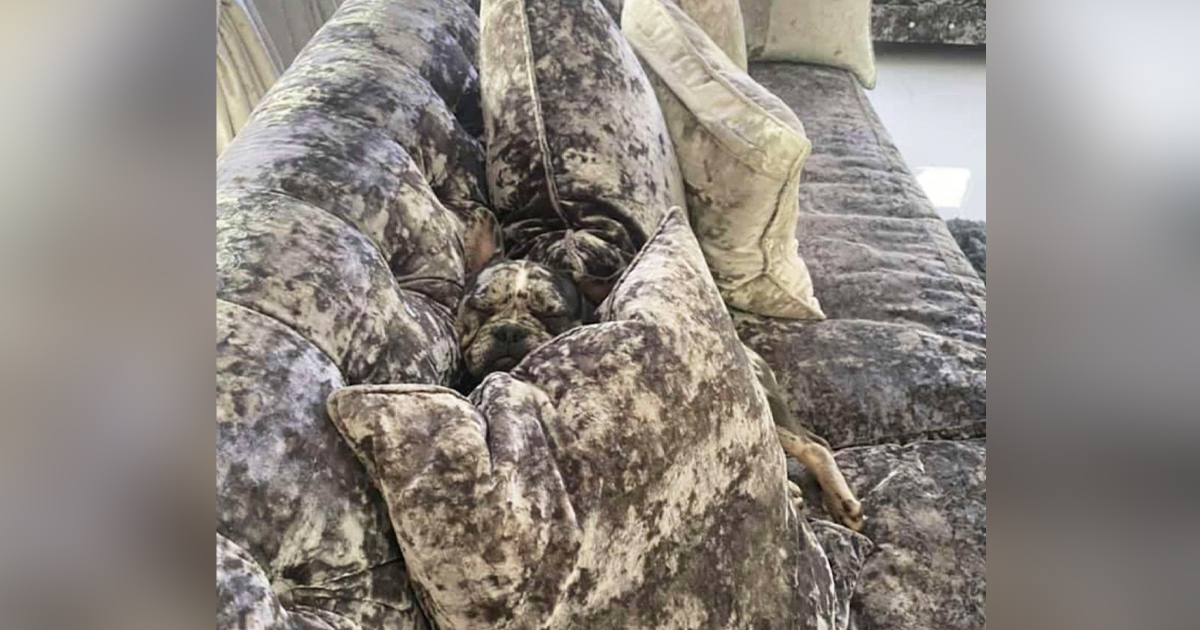 跟沙發同款!可愛汪自動隱身其中 媽笑:怎麼多了2個抱枕~