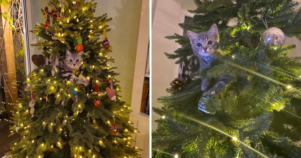 根本大型貓爬架! 貓奴分享「貓貓佔領聖誕樹」無奈:你永遠不知道牠會做出什麼~