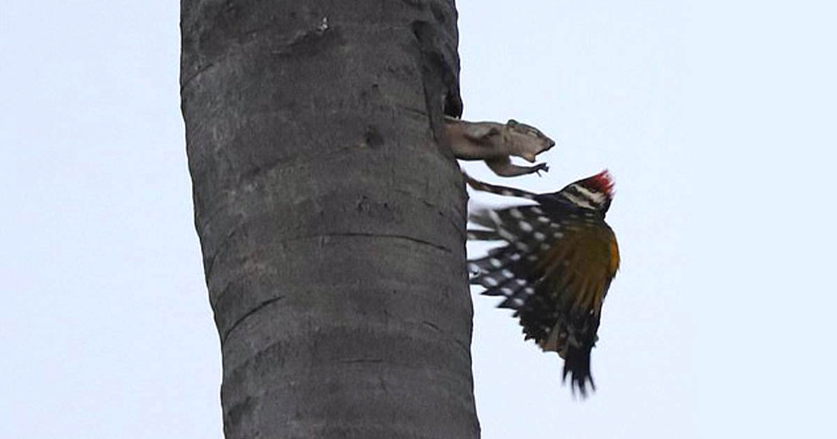 本松鼠正要睡!啄木鳥門外「叩叩叩」敲不停 牠爆氣探頭:吵P吵!