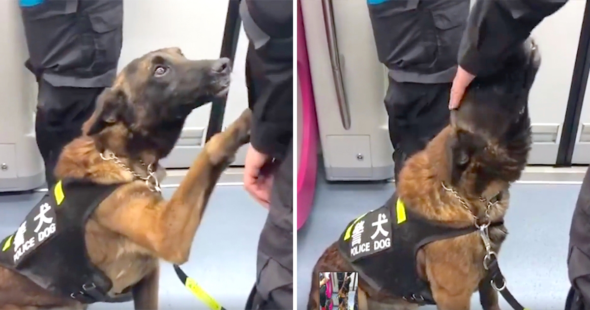 我是不是很乖?警犬聽話執勤「忍不住討摸摸」 一下還不夠狂蹭蹭:再多誇誇我嘛❤