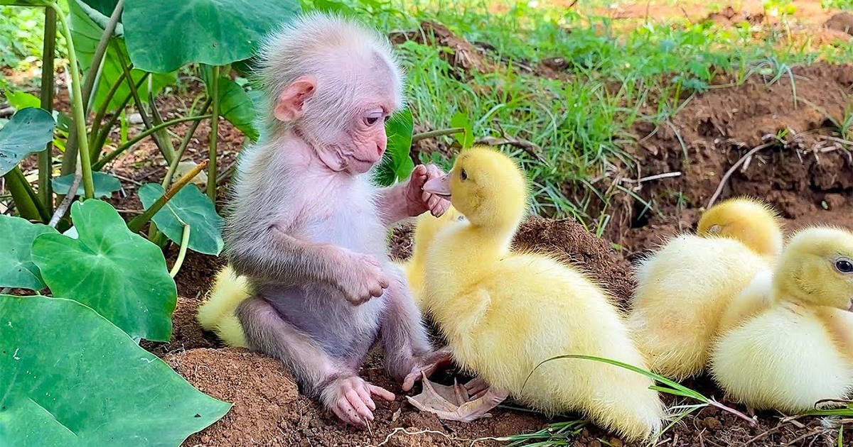 兩小無猜!小小猴主動「幫爸照顧小鴨」 網友感動:太懂事