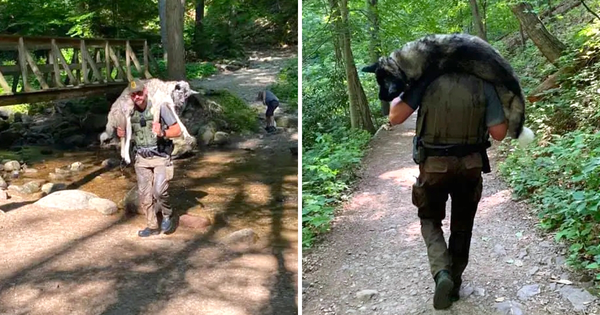 超帥!德牧登山中暑「腳軟了」 巡守員大叔「一肩扛起45kg」下山:救回一條命!