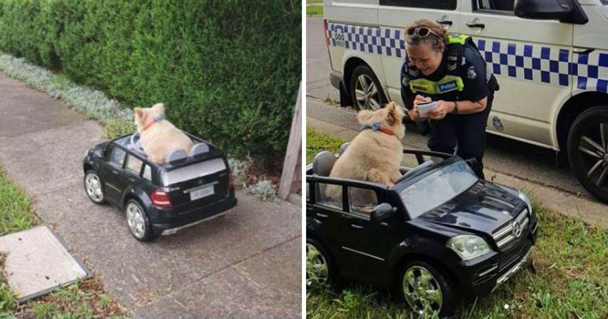 汪汪萌駕迷你車上路 警方攔下盤查:「太可愛影響交通安全喲~」