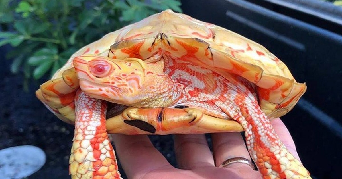 罕見白化龜曝光「居然不是純白色」 潑墨水彩獲驚嘆:像一頭火龍~