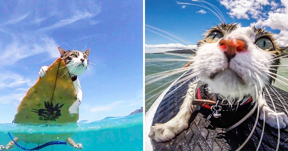 夫妻領養「害羞小貓咪」發現撿到寶了 超神氣衝浪還是「另類游泳健將」