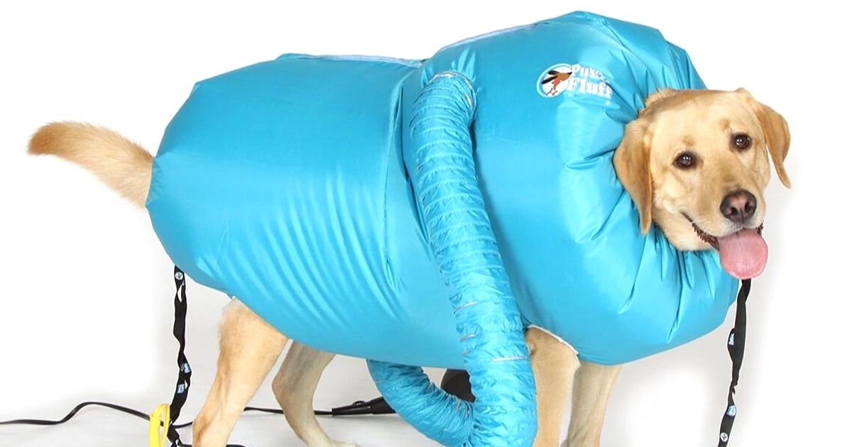 不會吹到手痠囉~9歲小妹「狗狗烘乾衣」 灌風就能一次吹全部