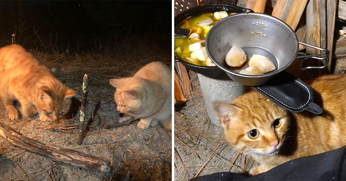一人露營卻遇上「當地野貓來搭伙」 他請客後…隔天貓貓還「送上高萌謝禮」