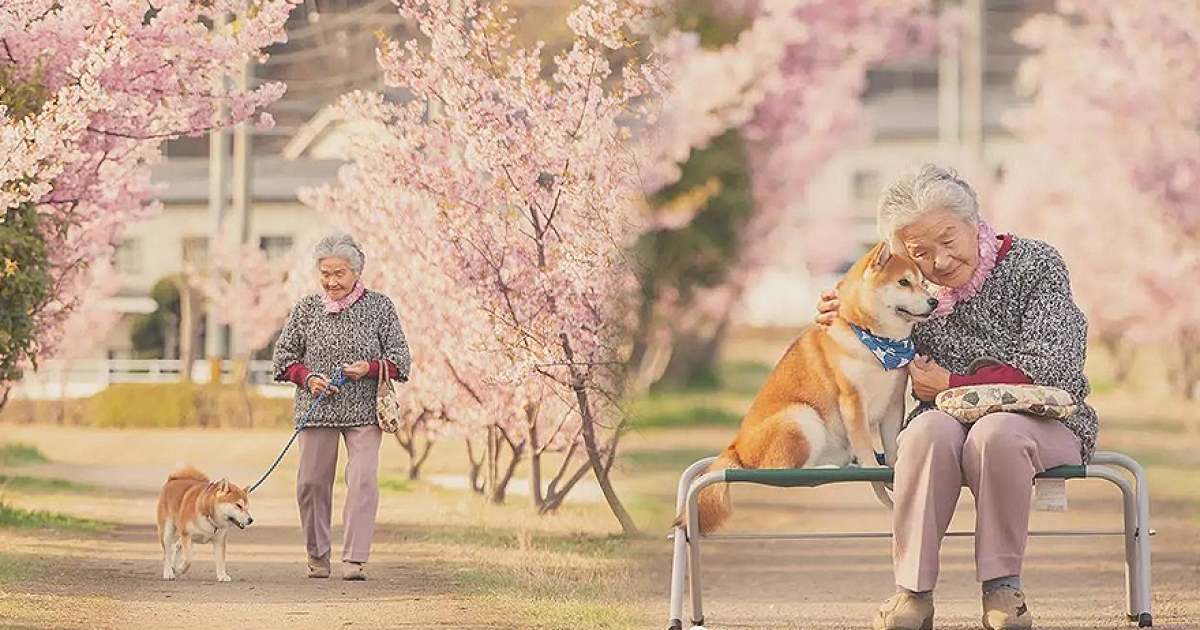 「讓我陪泥一輩子」柴柴和85歲阿嬤在櫻花樹下合照 網友感動喊:願時光不老