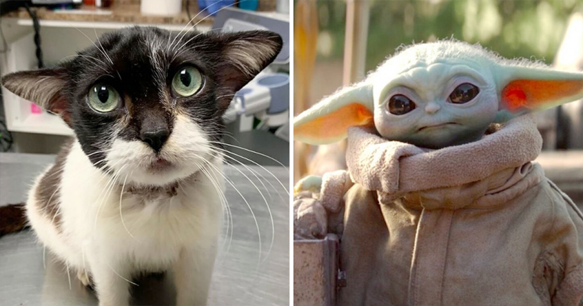 長超像「尤達寶寶」的浪喵獲救 獸醫都被牠的「直升機耳朵」萌倒啦