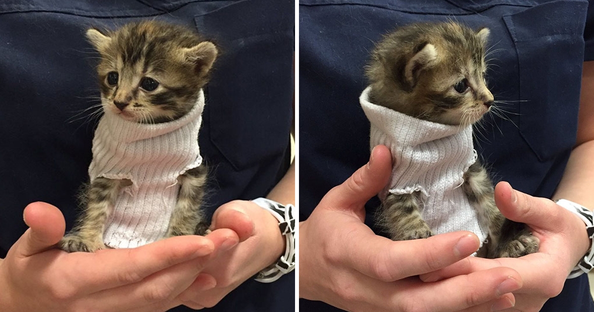 落難奶喵冷到猛發抖…好心人幫做「襪子毛衣」 網喊:史上最萌生物❤