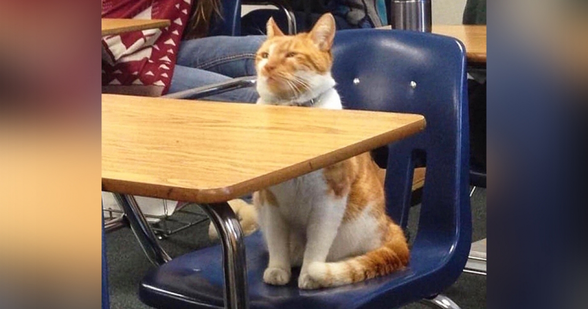 全校最專心的新學生! 橘喵天天上課「學霸式聽講」獲得專屬學生證