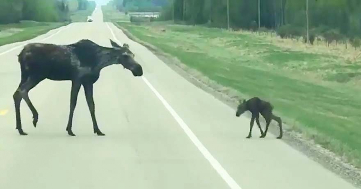 人家會怕怕…新生駝鹿緊張過馬路 馬麻「一步三回頭」關心:寶寶跟上哦~