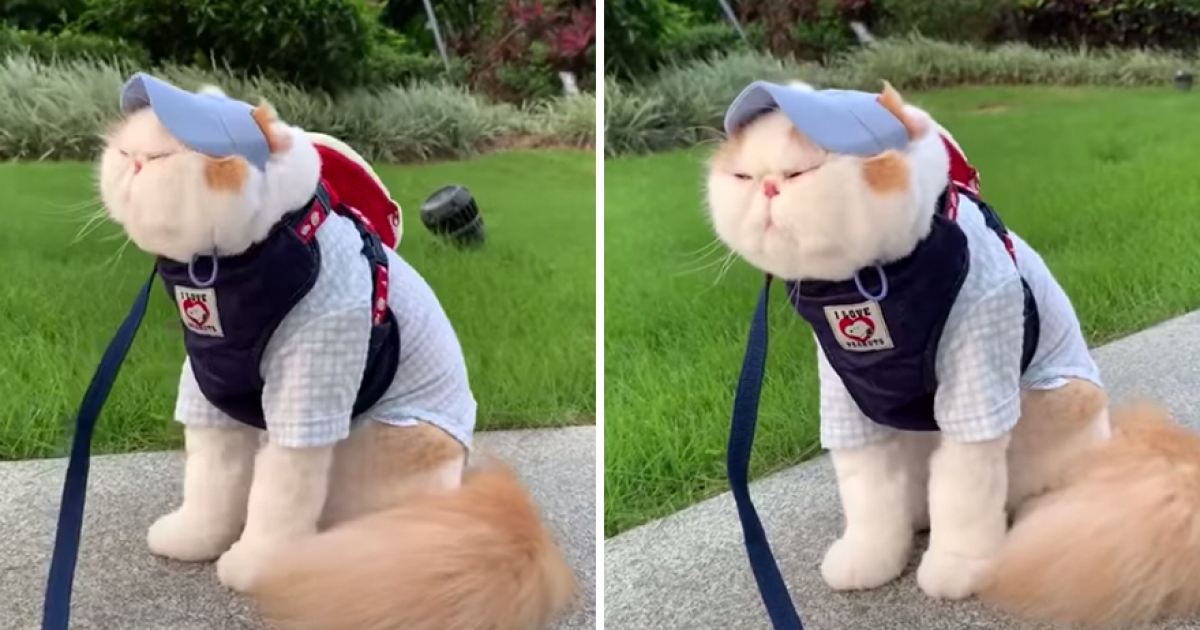 大餅臉肥貓「全身穿美美」出門 一吹風就厭世定格:人家只想回家…