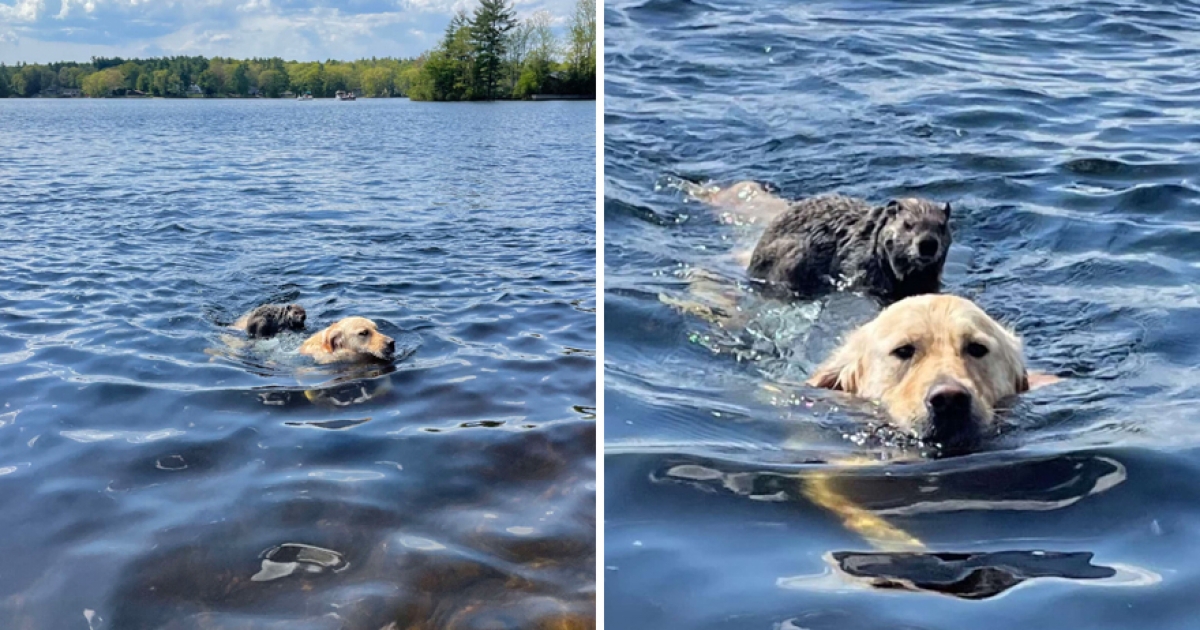 游泳遇到「載浮載沉」小生物求助! 暖阿金化身「水中狗狗肉」游回來:讓我載你一程~