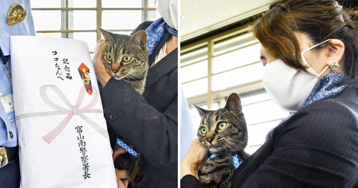 喵界之光! 日本萌貓「幫忙救落水老人」 警察署長頒獎:賞一袋貓糧