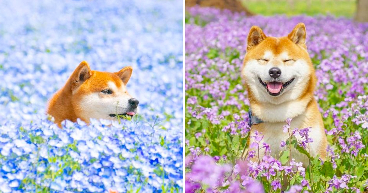 花美柴來啦! 萌柴賞花「瞇眼燦笑」史上最療癒:這裡好漂釀~