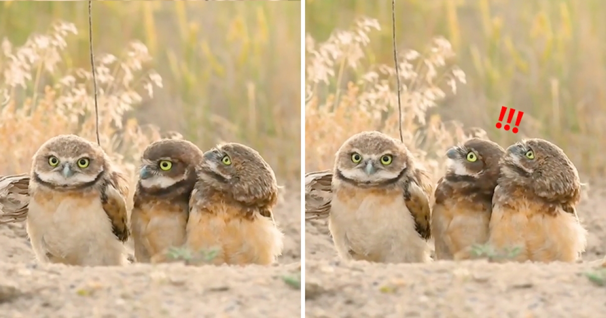 同伴揹樹枝現身 2隻小貓頭鷹「嚇出呆萌臉」:你怎麼長天線了?