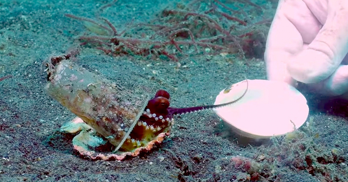 小章魚海底「垃圾杯」當成家 溫馨潛水員「化身房仲」幫牠找到新窩