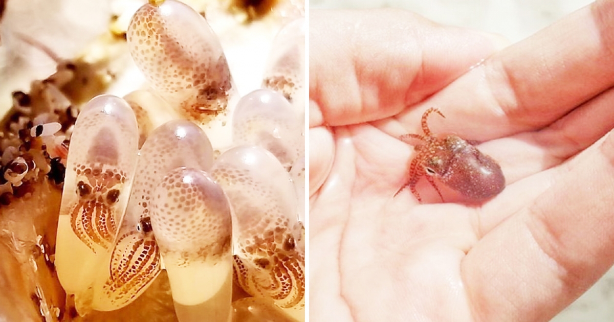 他在海邊撿到「躲透明蛋的烏賊寶寶」 一臉呆萌看世界…網QQ:今天開始不吃了