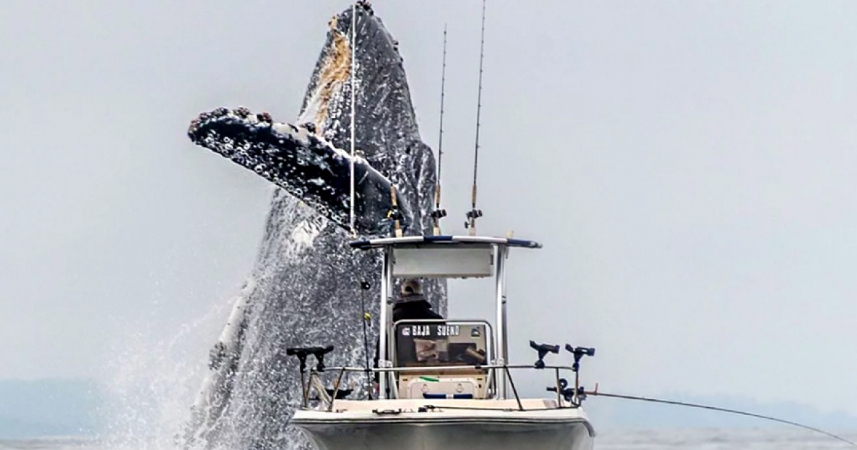 罕見瞬間被拍下!座頭鯨從小船旁躍出水面 「震撼身影」讓網友驚呼:人類好渺小