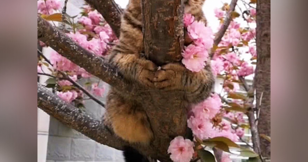 賞櫻發現樹上有雙眼睛? 她抬頭看到「求救小表情」笑噴